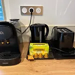 Cozinha equipada é fornecida com chaleira elétrica, refrigerador e forno. Os hóspedes podem jantar no Compose Ta Crepe próximo desta propriedade de Cannes.